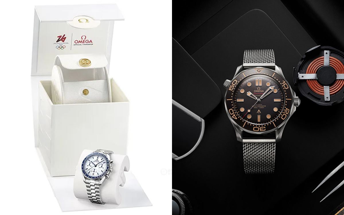 (左)スピードマスター38mm2026年ミラノコルティナオリンピックモデル(右)シーマスター300m「007エディション」