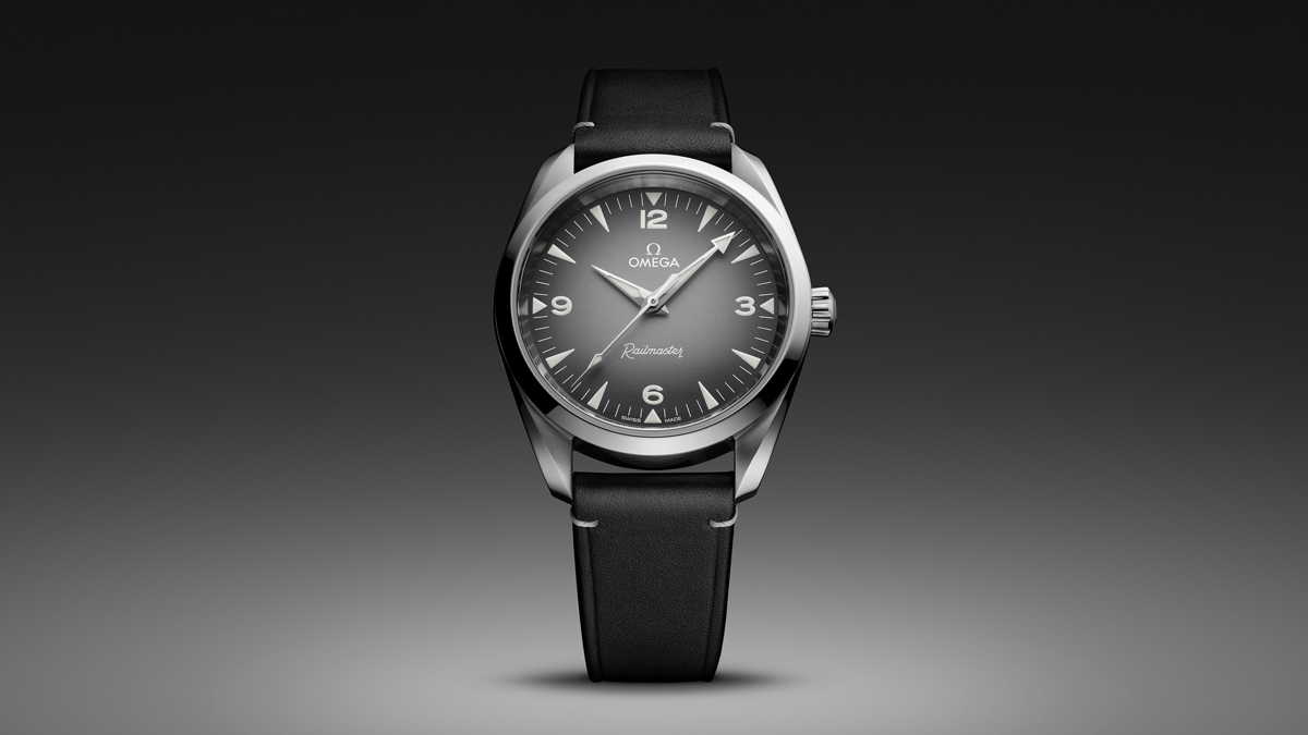1957年、オメガによるマスター・コレクション三部作のひとつとして発表されたのが、鉄道で働く人のために作られたプロフェッショナルウォッチ、その名も「レイルマスター」であった。その最新モデルは、スタイルとディテールを継承しつつ、新たなカラーリングと最先端の精度でアップデートされている。ケース径は38mm。左右対称の均整の取れたステンレス・スティール製ケースに収められるのは、METAS認定のマスタークロノメーター「オメガ コーアクシャル マスター クロノメーター キャリバー8806」。15,000ガウスの耐磁性をもつこの自動巻きムーブメントは、美しく仕上げられたブリッジやローターを備え、それを透明なサファイアクリスタルのケースバックを通していつでも観察することができる。